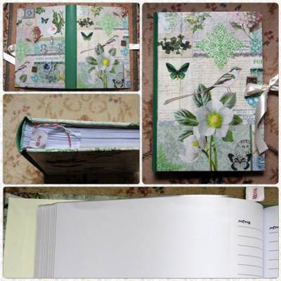Nagyon szép, mély fűzöld árnyalatú könyvkötő vászonnal borított, keményfedeles album. Ekrü árnyalatú előzéke színben hozzá passzol. |